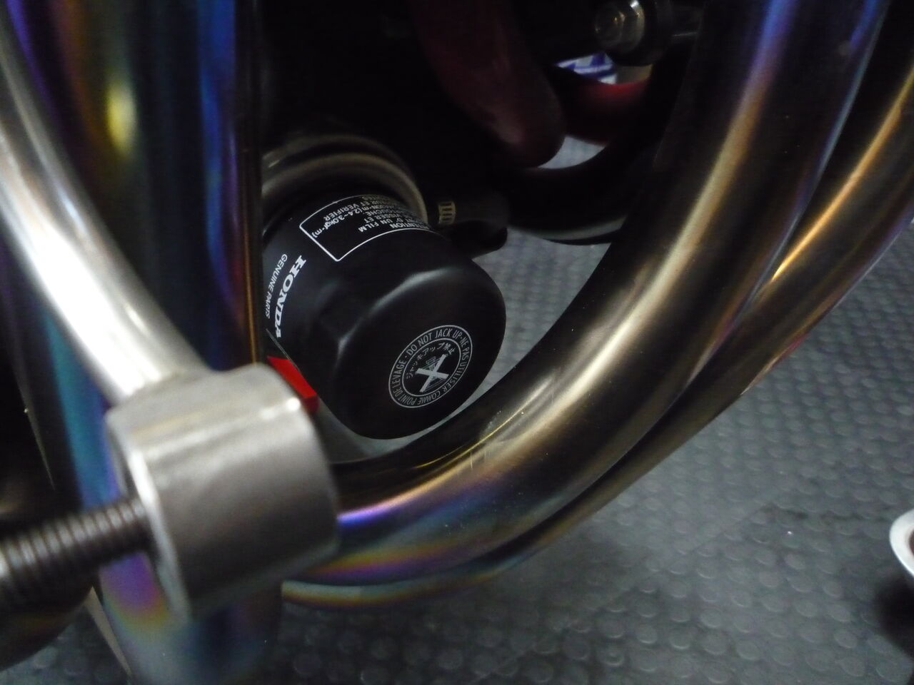 オイルフィルターの交換は純正の水冷式オイルクーラーとストライカー製のマフラーの相性が悪くエキパイ緩めないと交換できません