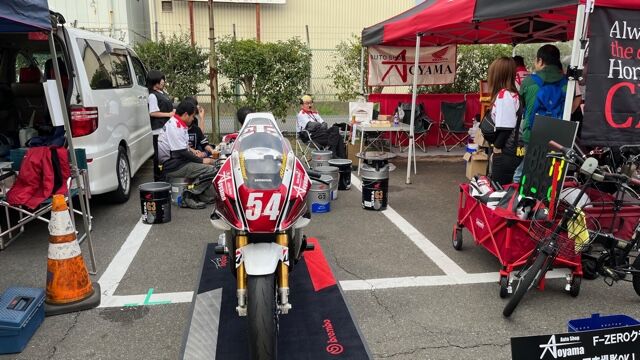 CBレーサー1号機と同じ感じでとアッパーカウルにウチのロゴステッカー&サイドカバーにRのエンブレムのリクエストも頂戴しました