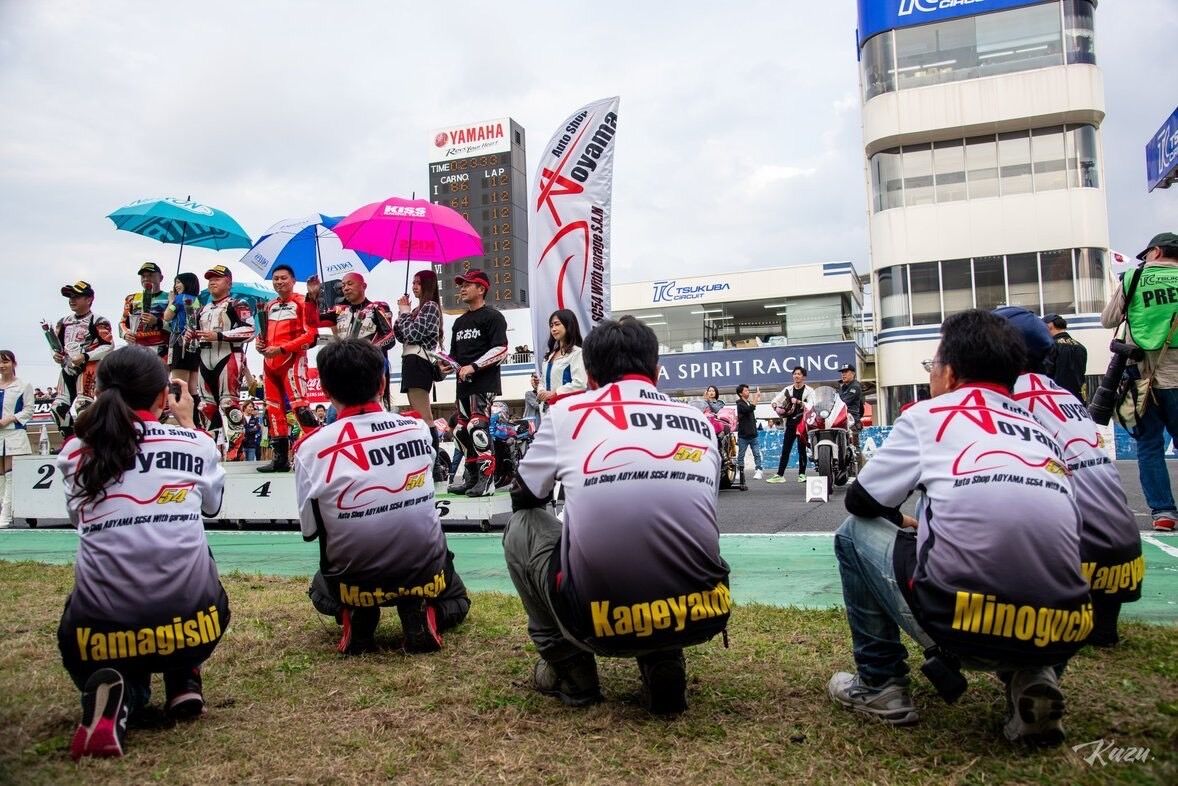 パドックの熱い空気から離れてヒッソリと佇むオートショップアオヤマのチームテント