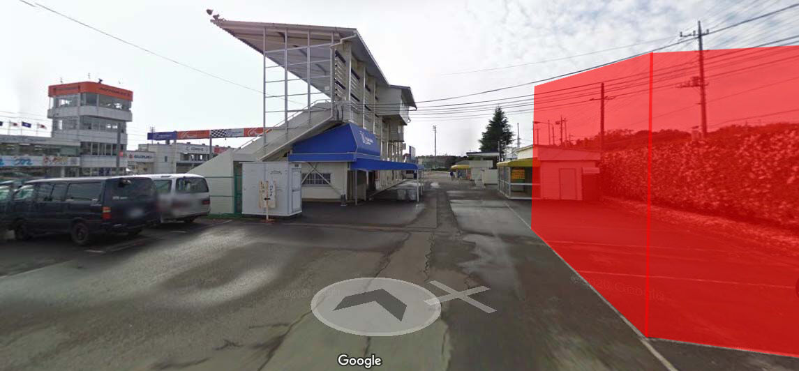 パドックへ通じる地下トンネル入り口のほぼ正面当たりの赤い箇所当たり・・・