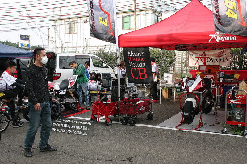 今回もメインスタンド裏にチームテントを構えCBオーナー様やオートショップアオヤマを応援するぜ!と言う来場者様用の歓談スペースをご用意しております
