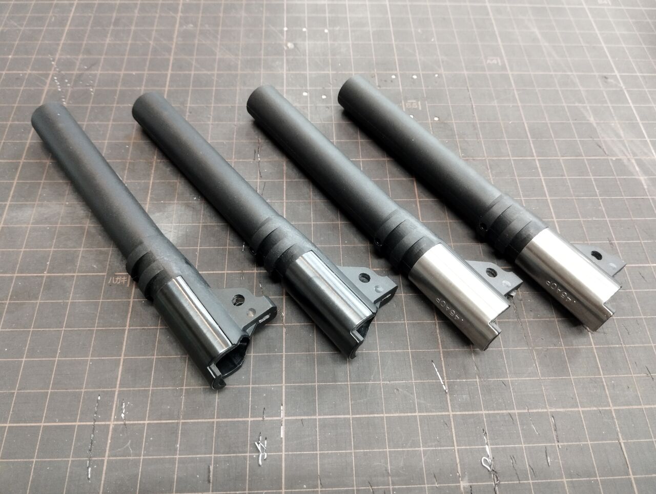 補修パーツで入手可能なのが、ミリタリー系の黒で無刻印か、シルバーの「45ACP」か、シルバーの「シリーズ70用刻印」の物しか見つかりませんでしたので取り急ぎ無刻印2本と「45ACP」を2本確保しました